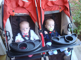 Our inaugural run in the new double jogger that Mommy is borrowing.